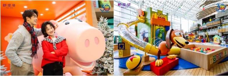 承襲全年的精彩節(jié)奏,頤堤港在年末壓軸呈獻(xiàn)“玩心FUN大”主題活動(dòng),將《玩具總動(dòng)員》的經(jīng)典魅力引入冬季花園,打造了一個(gè)巨型玩具主題空間。通過精心的空間敘事與比例變化,頤堤港邀請(qǐng)顧客“縮小”身形,化身玩具的一員,從玩具的視角與胡迪、巴斯光年等角色并肩展開冒險(xiǎn)故事。