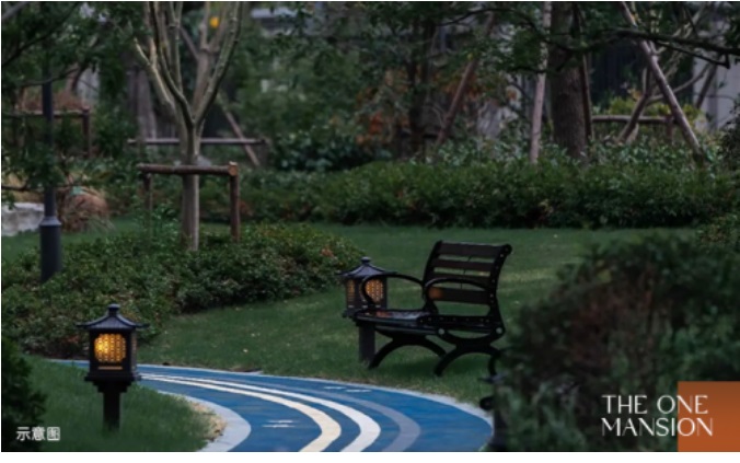 高奢儀式軸作為社區(qū)的景觀核心,采用對(duì)稱遞進(jìn)式設(shè)計(jì),從社區(qū)入口到樓棟門前,綠植與水景層層鋪陳,在移步換景中構(gòu)建起尊崇的歸家禮序。約1200米藝術(shù)雙環(huán)跑道,則為湖居生活注入活力基因:內(nèi)環(huán)鋪設(shè)零眩光氛圍燈光,搭配兩側(cè)芳香植物,成為歸家路上的療愈通道;外環(huán)采用專業(yè)級(jí)塑膠材質(zhì),沿園林外圍延展,讓運(yùn)動(dòng)與自然無縫銜接,比健身房更具沉浸感。