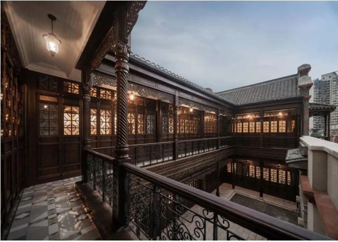 老建筑徹底拆除之后,開發(fā)商上海城投聯(lián)合設(shè)計方AAI,用鋼筋水泥、新磚等全新的建筑材料,并聘請老師傅負責木雕藝術(shù),復刻了“趙公館”的外貌特征。之后,這棟復建的建筑以“露香園文化展示中心”的面貌出現(xiàn)。