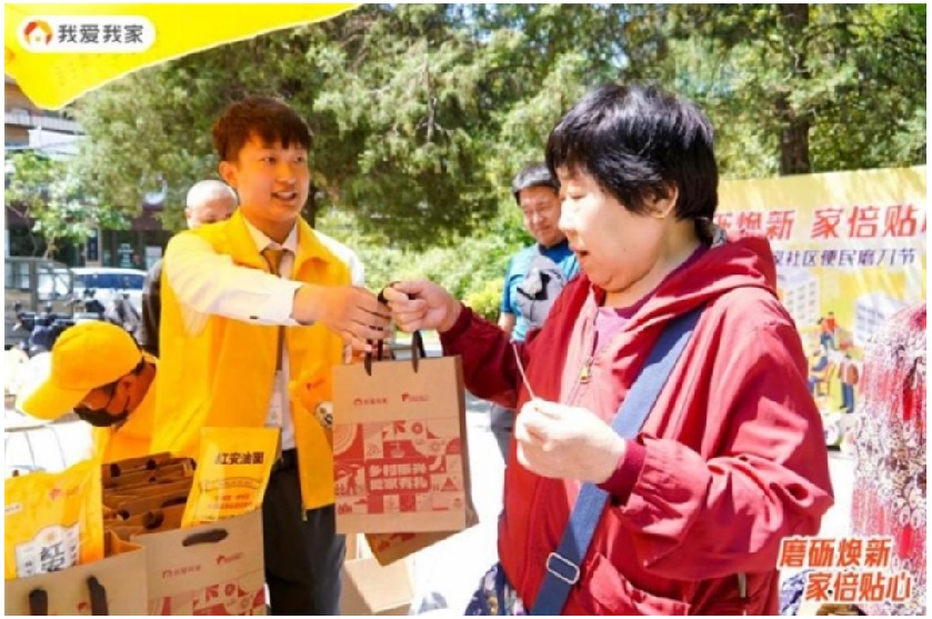 以我愛我家北京公司為例,近三年來其依托近800家社區(qū)門店構(gòu)建的服務(wù)網(wǎng)絡(luò),從便民服務(wù)、社區(qū)融合到社區(qū)關(guān)懷,為居民提供了全方位的支持。在便民服務(wù)上,不僅推出打印、磨刀、除蟑等“六大便民”服務(wù),還針對(duì)社區(qū)老人與兒童的需求提供理發(fā)等服務(wù);在社區(qū)融合上,我愛我家如同社區(qū)“黏合劑”,持續(xù)為居民搭建鄰里互動(dòng)平臺(tái),除了多年來堅(jiān)持在端午節(jié)組織居民包粽子掛艾草等傳統(tǒng)活動(dòng),近年來還發(fā)起社區(qū)“健型計(jì)劃”“親子歡樂運(yùn)動(dòng)匯”“音樂講堂”等活動(dòng),為居民創(chuàng)造鄰里交流契機(jī);在社區(qū)關(guān)懷方面,我愛我家的門店還化身“暖心驛站”,全年無休為戶外工作者提供飲水、熱飯、充電等服務(wù)。