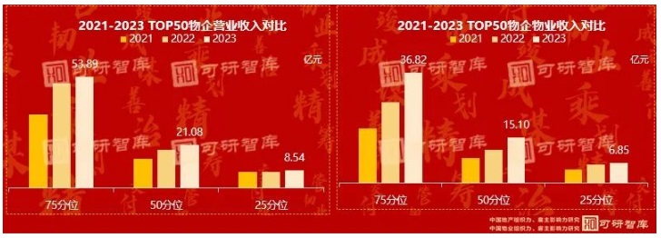 回顧2023 年,TOP50 物企的經(jīng)營業(yè)績(jī)呈現(xiàn)出喜憂參半的局面。營業(yè)收入平均增幅超過 10%,物業(yè)收入平均增幅更是超過 25%,物業(yè)收入在營業(yè)收入中所占的比重同比均值提升了 8%。頭部物企憑借自身強(qiáng)大的品牌與規(guī)模優(yōu)勢(shì),在多元化經(jīng)營領(lǐng)域成功開拓出 1 - 2 個(gè)具有競(jìng)爭(zhēng)力的賽道;然而,絕大多數(shù)物企依舊只能依賴傳統(tǒng)物業(yè)服務(wù)領(lǐng)域的增長亮點(diǎn)來維持企業(yè)的日常運(yùn)營,回歸行業(yè)本質(zhì)、切實(shí)提升物業(yè)服務(wù)品質(zhì)已然成為當(dāng)下以及未來大多數(shù)物企的核心經(jīng)營重點(diǎn)。