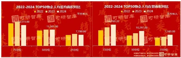 與房地產(chǎn)行業(yè)截然不同的是,2024年物業(yè)行業(yè)呈現(xiàn)出蓬勃發(fā)展、規(guī)模持續(xù)擴(kuò)張的態(tài)勢(shì)。在實(shí)際業(yè)務(wù)開展過程中,隨著房企在建項(xiàng)目的大規(guī)模交付,以及物企自身積極主動(dòng)地拓展三方項(xiàng)目管理業(yè)務(wù),物企的簽約面積與在管面積雙雙呈現(xiàn)出持續(xù)上揚(yáng)的趨勢(shì),頭部物企的平均在管面積已經(jīng)在 3 億平方米左右。