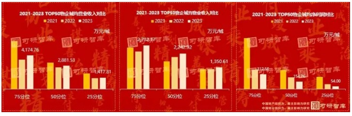 與人效及元效上升趨勢(shì)不同,TOP50物企的坪均產(chǎn)出出現(xiàn)了不同程度的分化,頭部企業(yè)坪均營收及坪均物收持續(xù)保持增長。之所以出現(xiàn)分化,或與近兩年大量企業(yè)向市場(chǎng)化項(xiàng)目拓展有關(guān)。在激烈的競(jìng)爭(zhēng)中,新簽與續(xù)簽項(xiàng)目都出現(xiàn)了價(jià)格下行挑戰(zhàn)。那么從利潤視角,考核與激勵(lì)是否可以向更加精細(xì)化的關(guān)注項(xiàng)目上的服務(wù)價(jià)格延續(xù)或提升出發(fā)去設(shè)計(jì),從而減緩過度以利潤為考核視角下的服務(wù)品質(zhì)下降的問題隱患,值得思考。