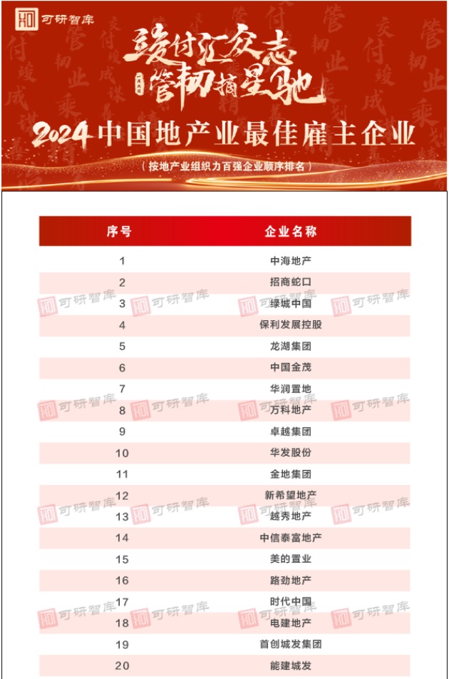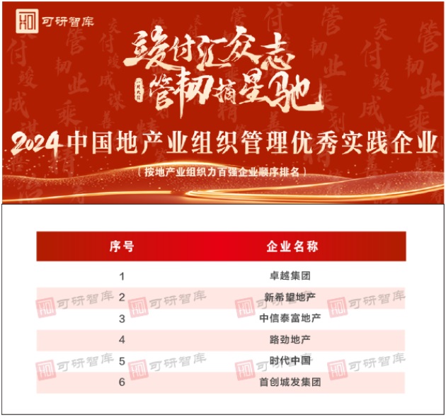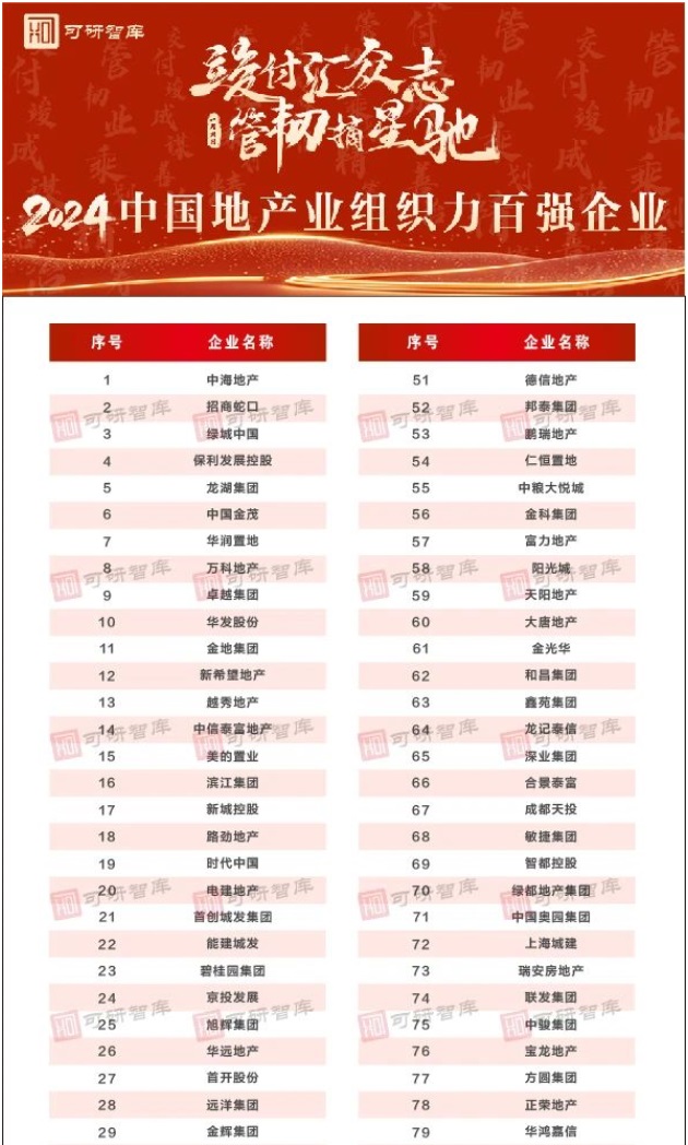“2024中國地產(chǎn)業(yè)組織力百強(qiáng)企業(yè)”
