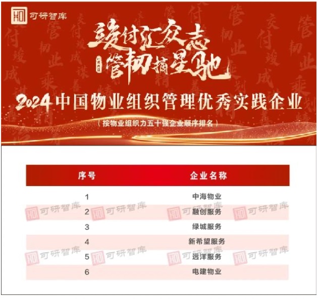 “2024中國物業(yè)組織力五十強(qiáng)企業(yè)”