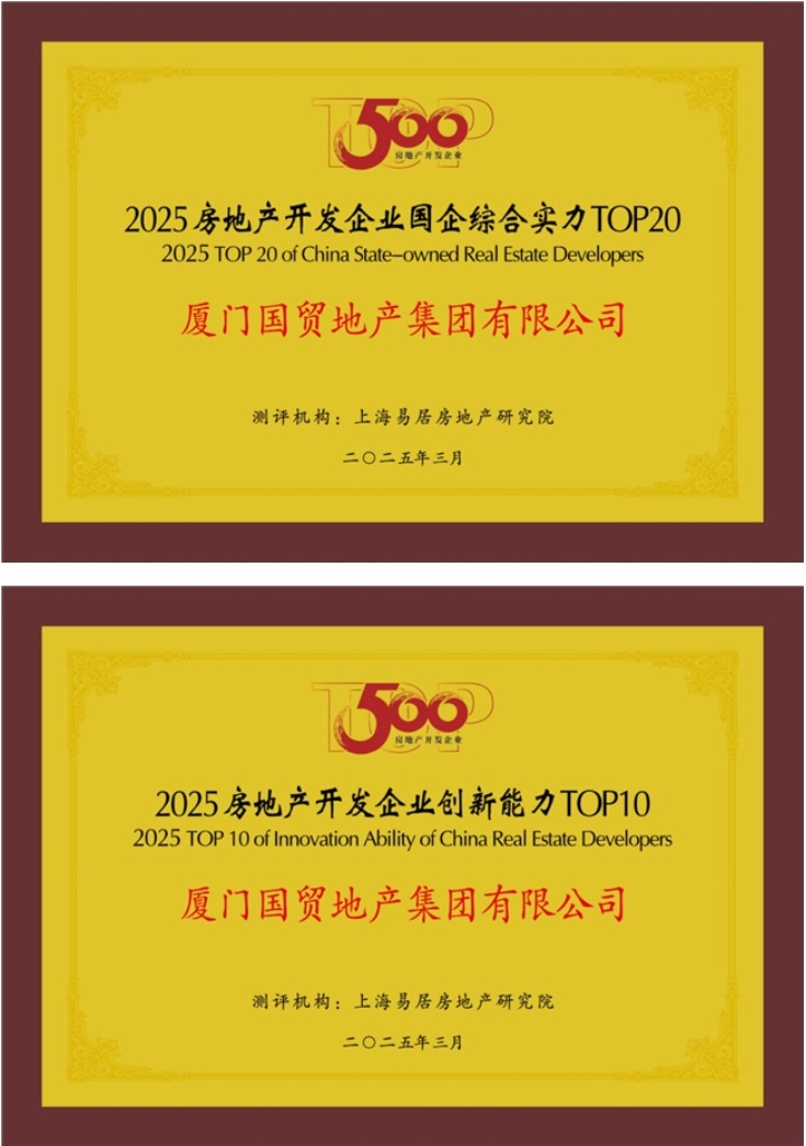 此外,在國(guó)企綜合實(shí)力、創(chuàng)新能力、產(chǎn)品力等細(xì)分領(lǐng)域,國(guó)貿(mào)地產(chǎn)斬獲了“2025房地產(chǎn)開(kāi)發(fā)企業(yè)國(guó)企綜合實(shí)力TOP20(第14位)、2025房地產(chǎn)開(kāi)發(fā)企業(yè)創(chuàng)新能力TOP10(第2位)“等多項(xiàng)殊榮,開(kāi)發(fā)的福州國(guó)貿(mào)天琴灣榮獲“2025十大交付力高端作品”、廈門天樾云頌榮獲“2025典型項(xiàng)目”。