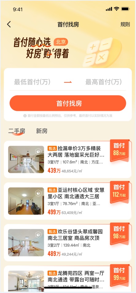 北京朝陽區(qū)劉先生對此深有體會:“使用‘首付找房’功能,輸入首付預算上下限金額,我們僅用10秒就篩選出符合條件的備選房源,再結合區(qū)域、戶型、樓層等需求,很快鎖定了心儀目標!