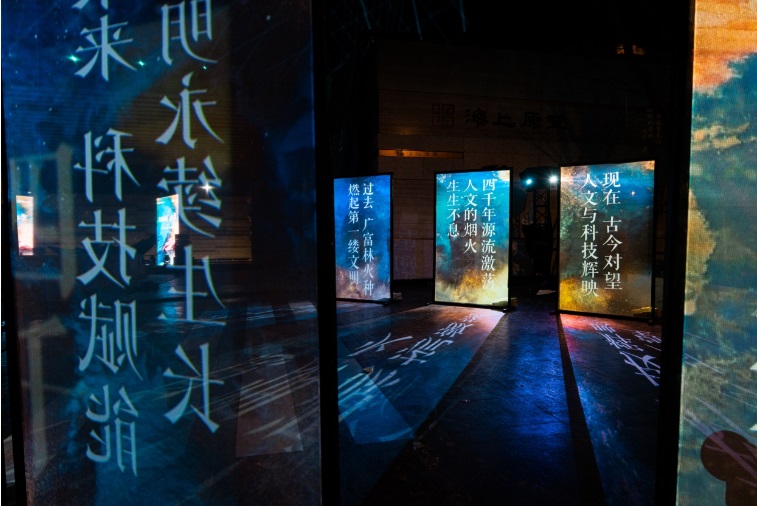 活動(dòng)現(xiàn)場(chǎng),震撼人心的光影藝術(shù)秀與廣富林古老文明交相輝映,璀璨交錯(cuò)間,恍若穿越四千年歷史人文的時(shí)空之旅,令人沉浸。