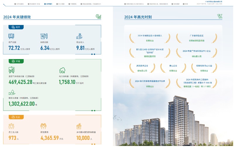 在房地產(chǎn)行業(yè)向高質(zhì)量發(fā)展轉(zhuǎn)型的背景下,珠海國(guó)資控股企業(yè)世榮兆業(yè)(002016.SZ)于4月23日發(fā)布《2024年度環(huán)境、社會(huì)及治理(ESG)報(bào)告》,這是其成為大橫琴集團(tuán)控股上市平臺(tái)后的首份ESG披露文件,標(biāo)志著區(qū)域房企在可持續(xù)發(fā)展領(lǐng)域的深度探索。報(bào)告顯示,世榮兆業(yè)以“宜居家園筑造者,美好生活服務(wù)商”為愿景,通過(guò)綠色技術(shù)突破、民生項(xiàng)目落地與治理革新,構(gòu)建起“國(guó)企責(zé)任+區(qū)域深耕”的ESG實(shí)踐體系,為粵港澳大灣區(qū)城市運(yùn)營(yíng)商轉(zhuǎn)型提供樣本。