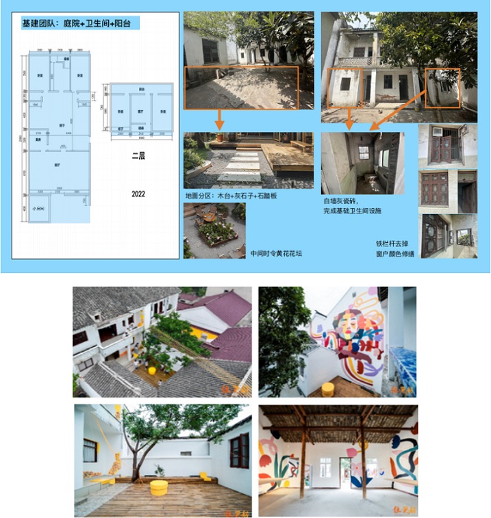 庭院作為公共活動(dòng)的重要場(chǎng)所,在院子2022的改造中被賦予了新的活力。設(shè)計(jì)師對(duì)庭院地面進(jìn)行精心分區(qū),木臺(tái)、灰石子、石踏板錯(cuò)落有致,墻面上的巨幅藝術(shù)繪畫使得整個(gè)庭院富有藝術(shù)氣息。在這里,居民們可以圍坐閑談、孩子們嬉戲玩耍,溫暖的鄰里情誼在此悄然生長(zhǎng)。
