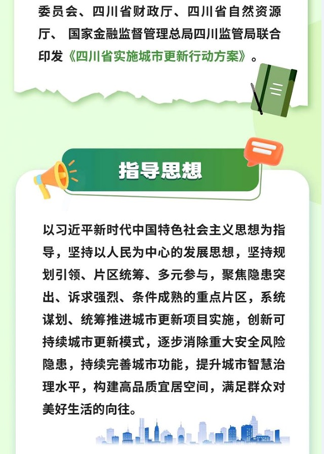 住房城鄉(xiāng)建設(shè)廳更新處相關(guān)負(fù)責(zé)人表示,《行動方案》堅(jiān)持以人民為中心,規(guī)劃引領(lǐng)、片區(qū)統(tǒng)籌、多元參與,推動四川城市更新工作系統(tǒng)謀劃、統(tǒng)籌推進(jìn),持續(xù)完善城市功能,提升城市智慧治理水平,為人民群眾創(chuàng)造更加安全、宜居、綠色、智慧的城市環(huán)境。