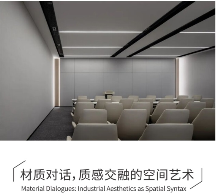 Transformative Training Hall: Movable partition system transforms the space into a versatile "Magic Box" instantly, accommodating either a 120-person auditorium or 4 seminar rooms.
