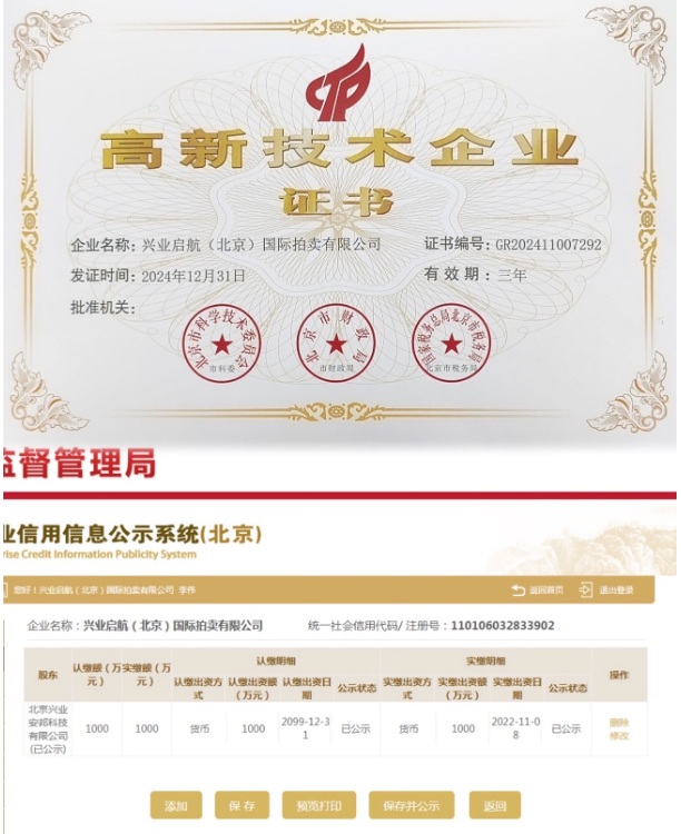 目前,興業(yè)拍賣網(wǎng)實繳資金達一千萬,使客戶更加信任,服務(wù)更加安心。公司還憑借在互聯(lián)網(wǎng)拍賣技術(shù)研發(fā)與應(yīng)用方面的突出成果,成功獲得國家高新技術(shù)企業(yè)認(rèn)證,這一認(rèn)證是對其技術(shù)實力和創(chuàng)新能力的高度認(rèn)可。