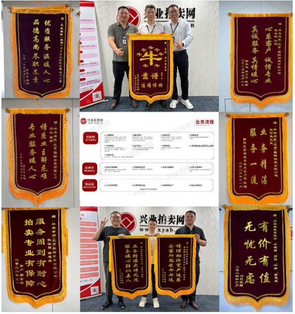 在服務(wù)流程上,興業(yè)拍賣網(wǎng)真正做到了從拍賣前期、中期到后期的全鏈條細(xì)致服務(wù)。前期為客戶精準(zhǔn)篩選標(biāo)的、深入分析市場行情;中期全程陪同參拍、實時解答疑問、提供專業(yè)策略支持;后期協(xié)助辦理過戶、交稅等繁雜手續(xù),讓客戶省心又省力。專業(yè)貼心的服務(wù)贏得了客戶的廣泛好評,辦公室墻上懸掛的一面面錦旗,正是客戶對興業(yè)拍賣網(wǎng) “專業(yè)高效”“服務(wù)周到”“盡職盡責(zé)”的最佳認(rèn)可,也成為企業(yè)持續(xù)提升服務(wù)品質(zhì)的動力源泉。