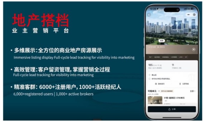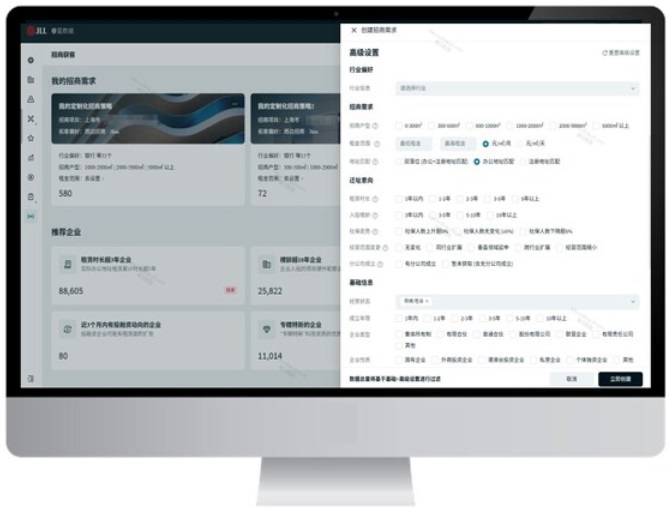 面對當前商業(yè)地產(chǎn)市場招商難、去化慢的普遍困境,仲量聯(lián)行結(jié)合自身行業(yè)優(yōu)勢及領先的科技產(chǎn)品研發(fā)能力,重磅升級多款地產(chǎn)科技工具以輔助業(yè)主客戶在當下市場困境中突破招商瓶頸。睿見數(shù)據(jù)「招商獲客模塊」幫助業(yè)主客戶高效鎖定優(yōu)質(zhì)企業(yè)名單,同時業(yè)主還可通過 【地產(chǎn)搭檔業(yè)主營銷平臺】協(xié)同應用,構(gòu)建從房源展示到招商獲客的全鏈路招商解決方案,以科技 + 服務助力業(yè)主招商及推廣,實現(xiàn)高效去化。