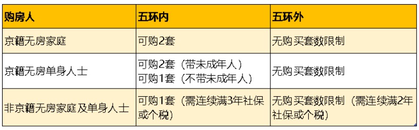 表1:調(diào)整后北京市不同家庭在京的購房政策