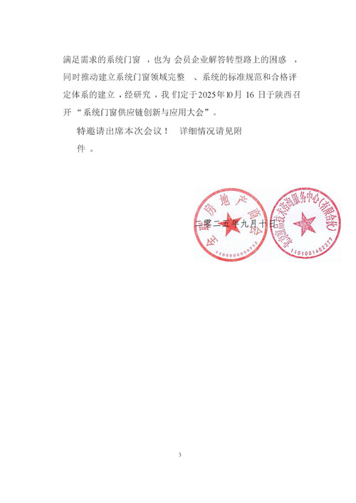 關(guān)于邀請出席“系統(tǒng)門窗供應(yīng)鏈創(chuàng)新與應(yīng)用大會”的函