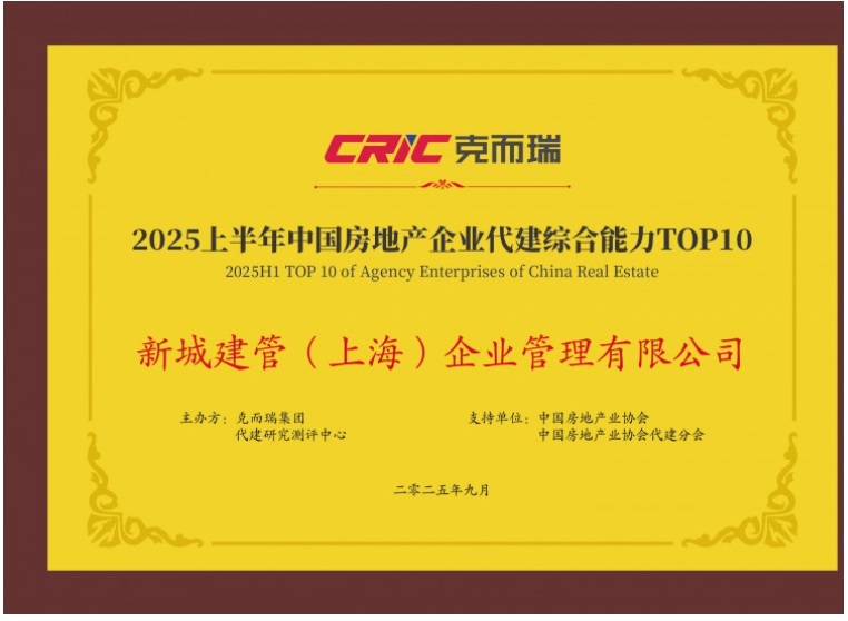 進入9月,新城控股(601155.SH)旗下代建、代管平臺——新城建管迎來收獲期。9月16日,由克而瑞集團主辦的“2025中國房地產(chǎn)企業(yè)品牌價值測評成果發(fā)布會暨第十五屆房地產(chǎn)品牌發(fā)展高峰論壇”召開,新城建管憑借強大的綜合實力和突出的市場表現(xiàn),榮獲“2025上半年中國房地產(chǎn)企業(yè)代建綜合能力TOP10”、“2025上半年中國房地產(chǎn)優(yōu)秀商業(yè)代建企業(yè)”兩大榮譽,旗下位于南通的和美璽悅榮膺“2025上半年全國優(yōu)秀代建項目”。