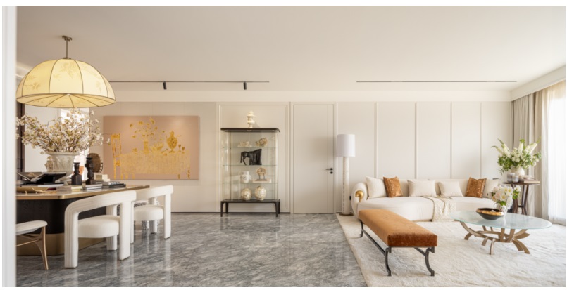 室內(nèi)空間上,全面采用開放式的LDK一體化格局,讓“無界”的空間尺度,服務(wù)于人的情感連接。以法式261㎡戶型為例,方廳的豪宅尺度一覽無余,橫跨客餐廳的無梁天花吊頂向超大的寬幕窗口延申,利落又典雅的空間設(shè)計和雕刻藝術(shù)的工藝細(xì)節(jié),讓奢闊的空間藏著居住的細(xì)膩。