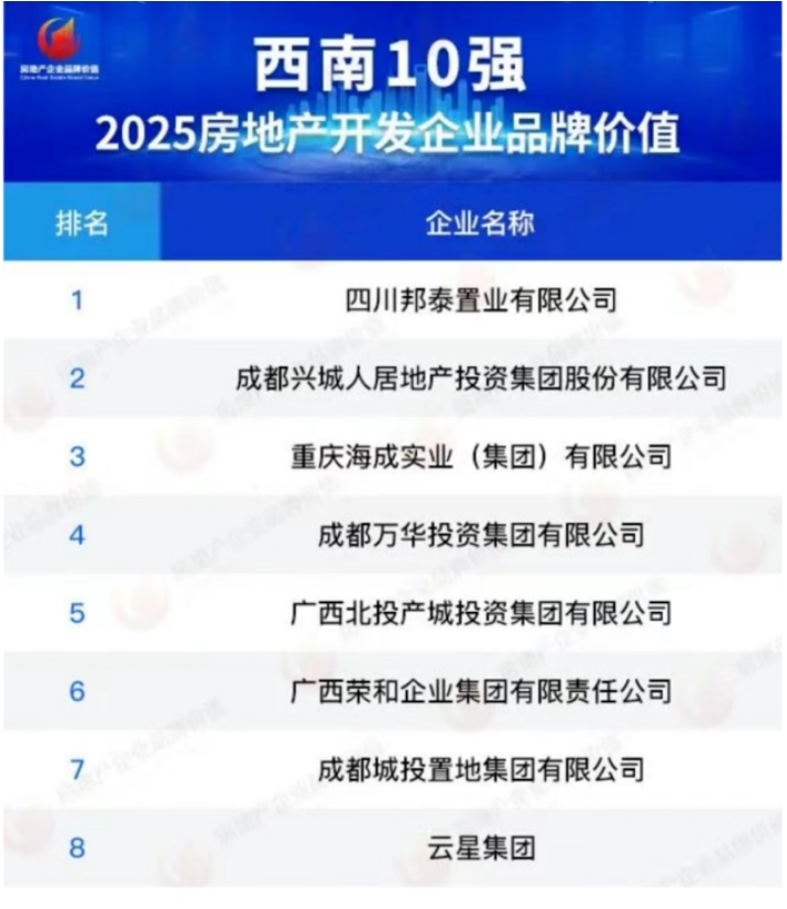 據(jù)中國(guó)房地產(chǎn)業(yè)協(xié)會(huì)、上海易居房地產(chǎn)研究院與克而瑞集團(tuán)聯(lián)合發(fā)布的《2025房地產(chǎn)企業(yè)品牌價(jià)值測(cè)評(píng)研究報(bào)告》顯示,邦泰集團(tuán)憑借其堅(jiān)實(shí)的品牌積淀與戰(zhàn)略聚焦,成功躋身克而瑞榜單西南片區(qū)TOP1,成為品牌價(jià)值攀升的典型代表。這一排名并非偶然,其背后是邦泰一系列扎實(shí)業(yè)績(jī)數(shù)據(jù)的支撐:從進(jìn)一城深耕一城的城市布局的廣度,到單城項(xiàng)目的熱銷(xiāo)深度;從超越行業(yè)標(biāo)準(zhǔn)的產(chǎn)品配置,到高達(dá)98%的客戶(hù)滿(mǎn)意度,邦泰的品牌實(shí)力正通過(guò)這些硬核指標(biāo)得到充分驗(yàn)證。