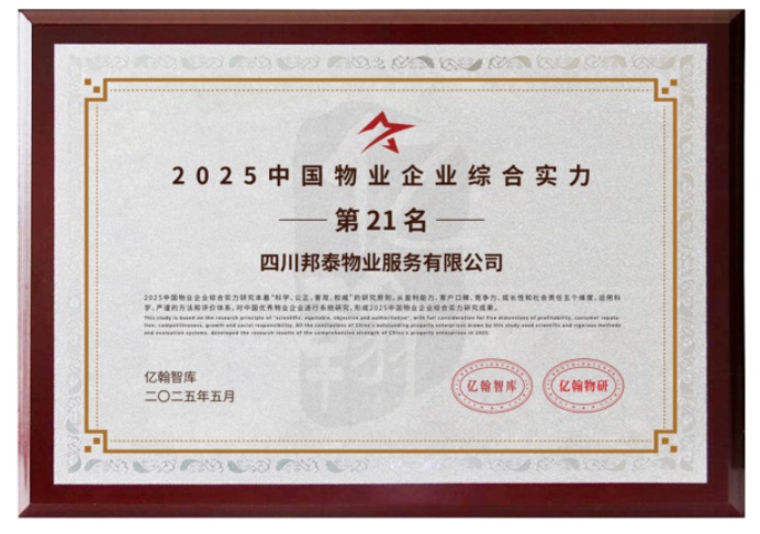 邦泰深知,真正的品質(zhì)生活不僅源于好房子,更取決于交付后長(zhǎng)期的物業(yè)服務(wù)體驗(yàn)。邦泰物業(yè)以連續(xù)多年客戶(hù)滿(mǎn)意度超過(guò)95% 的卓越表現(xiàn),在2025年榮獲全國(guó)物業(yè)企業(yè)綜合實(shí)力第21名,印證了集團(tuán)從“好產(chǎn)品”到“好生活”的承諾兌現(xiàn)。