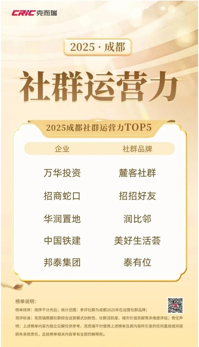邦泰集團(tuán)品牌價(jià)值的構(gòu)建,還體現(xiàn)在其社區(qū)服務(wù)創(chuàng)新上。“泰有位”社群體系致力于營(yíng)造“邦泰沒(méi)有陌生人”的社區(qū),自2024年成立以來(lái),成功孵化400余個(gè)社群組織,累計(jì)發(fā)起1000余場(chǎng)社群活動(dòng),不僅提升了業(yè)主滿(mǎn)意度與品牌美譽(yù)度,更助力在售項(xiàng)目的客戶(hù)轉(zhuǎn)化,實(shí)現(xiàn)了“口碑與業(yè)績(jī)”的雙豐收,也讓邦泰斬獲“2025 成都社群運(yùn)營(yíng)力 TOP5”榮譽(yù)。