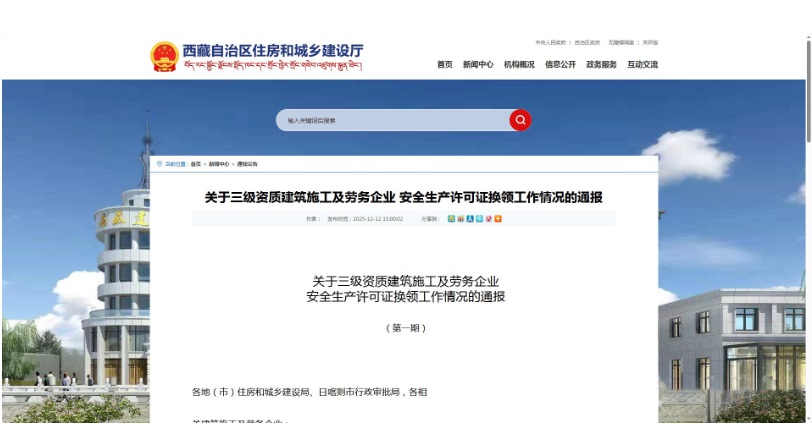 2025年12月12日,西藏自治區(qū)住建廳發(fā)布三級(jí)資質(zhì)建筑施工及勞務(wù)企業(yè)安全生產(chǎn)許可證(以下簡(jiǎn)稱“安許”)換領(lǐng)核查通報(bào),這一行業(yè)合規(guī)“驚雷”引發(fā)全國(guó)關(guān)注:本次核查中僅226家企業(yè)通過(guò)核驗(yàn),383家企業(yè)因安全管理人員不足、資質(zhì)過(guò)期、證不符實(shí)等問(wèn)題判定不合格,近70%企業(yè)被亮紅燈,整改期間將被暫停投標(biāo)、限制承接新項(xiàng)目,直接影響正常經(jīng)營(yíng)生存。