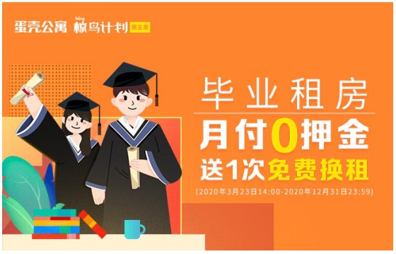 3月23日,國內(nèi)領(lǐng)先的互聯(lián)網(wǎng)長租公寓運(yùn)營商蛋殼公寓宣布,專門面向2020年應(yīng)屆大學(xué)畢業(yè)生的優(yōu)惠租房項目“椋(liang)鳥計劃”第五季正式上線。