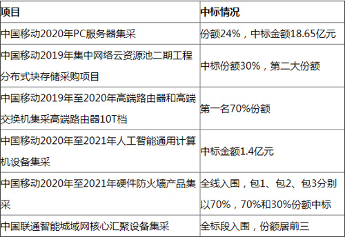 中國移動2020年P(guān)C服務(wù)器集采份額24%,中標(biāo)金額18.65億元