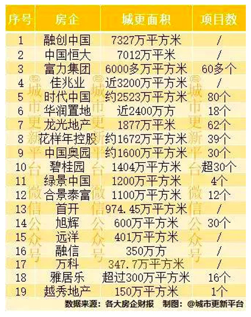 此外,從布局規(guī)模來看,雅居樂與其他成立城市更新集團(tuán)相比,也稍顯遜色。據(jù)公開資料顯示,截至2019年底,雅居樂在城市更新方面,僅完成了10個項(xiàng)目的合作協(xié)議、5個項(xiàng)目的框架協(xié)議,鎖定土地面積超600萬平方米。而同為粵系房企,截至2019年12月31日,富力地產(chǎn)已簽約的合作城市更新項(xiàng)目超過70個,規(guī)劃總建筑面積超過了7000萬平米,可售面積超過4000萬平米。