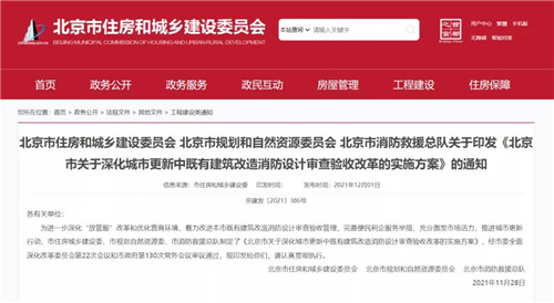 一直以來,消防驗收都是各地城市更新的一大難題。為了進一步深化“放管服”改革和優(yōu)化營商環(huán)境,12月1日,北京市住建委等三部門發(fā)布了《北京市關(guān)于深化城市更新中既有建筑改造消防設(shè)計審查驗收改革的實施方案》(以下簡稱《實施方案》)。