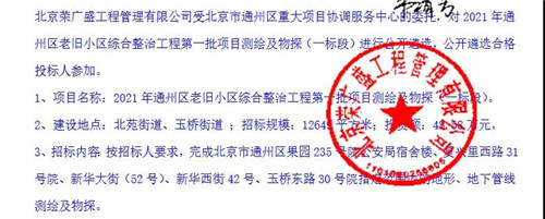 近日,中國(guó)招標(biāo)投標(biāo)公共服務(wù)平臺(tái)發(fā)布了2021年通州區(qū)老舊小區(qū)綜合整治工程第一批項(xiàng)目有關(guān)公告。