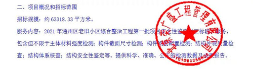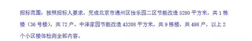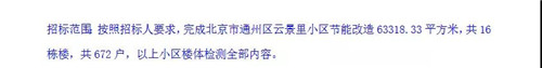 招標(biāo)范圍:云景里小區(qū)節(jié)能改造63318.33平方米,共16棟樓,672戶,以上小區(qū)樓體檢測(cè)全部?jī)?nèi)容。