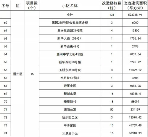 2021年北京市第一批老舊小區(qū)綜合整治項(xiàng)目(通州區(qū))名單