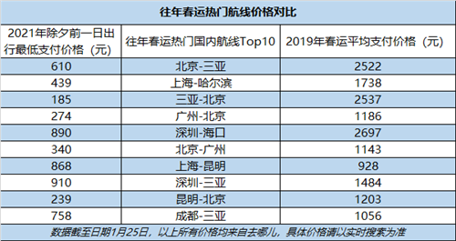 哪兒發(fā)布的數(shù)據(jù)顯示,往年春運(yùn)期間最熱門的航線紛紛遇冷。其中包括北京-哈爾濱、北京-三亞等以往“一票難求”的航線價(jià)格均已降溫。