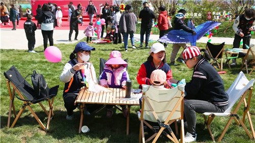 之于踏青游玩,最興奮的莫過于孩子。廣闊的花朝廣場上,夢幻的泡泡隨風(fēng)飄搖,更高處一支支繽紛的紙鳶俯瞰山野,遍野的綠意之間,孩子們肆意嬉笑玩鬧。
