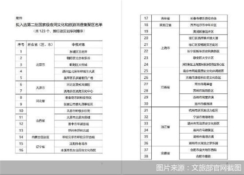7月18日,文旅部發(fā)布公示稱,經(jīng)地方申報(bào)、省廳推薦、合規(guī)性審查、專家評(píng)審、輿情風(fēng)控、實(shí)地考察等程序,擬確定北京市東城區(qū)王府井、朝陽區(qū)北京歡樂谷、朝陽區(qū)大悅城等123個(gè)項(xiàng)目為第二批國(guó)家級(jí)夜間文化和旅游消費(fèi)集聚區(qū)。