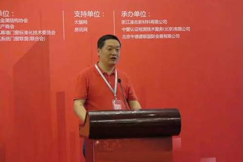 中國建筑金屬結(jié)構(gòu)協(xié)會副總工程師、中窗認證檢測技術(shù)服務(wù)(北京)有限公司總經(jīng)理劉萬奇代表中國建筑金屬結(jié)構(gòu)協(xié)會會長郝際平發(fā)表致辭。