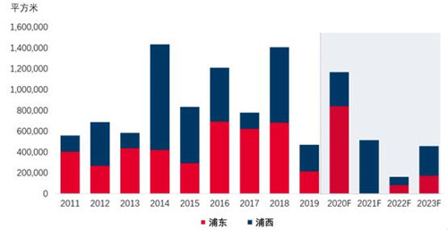 上海優(yōu)質(zhì)商務(wù)園區(qū)供應(yīng)量(2011年——2023年)