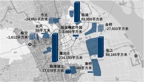 上海優(yōu)質(zhì)商務(wù)園區(qū)各商圈凈吸納量(2020年前三季度)