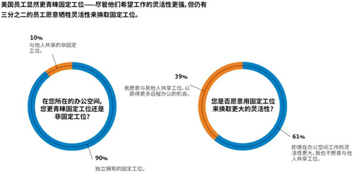 美國員工對共享工位持謹慎態(tài)度,許多員工寧可犧牲居家辦公的靈活性,也要在辦公室中擁有固定工位。