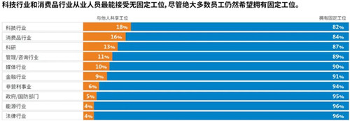 縱觀各行業(yè),美國員工對共享工位模式持謹慎態(tài)度。相較于靈活的居家辦公,大多數(shù)員工更青睞擁有固定工位。