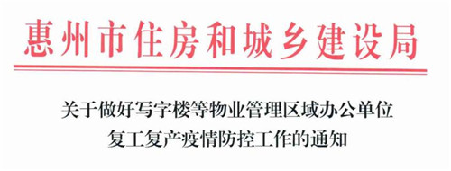 2月9日,惠州市住建局發(fā)出《關(guān)于做好寫(xiě)字樓等物業(yè)管理區(qū)域辦公單位復(fù)工復(fù)產(chǎn)疫情防控工作的通知》(下稱(chēng)《通知》),要求各縣(區(qū))住建局、房管局(中心),市物業(yè)管理協(xié)會(huì),各物業(yè)服務(wù)企業(yè),切實(shí)做好寫(xiě)字樓區(qū)域辦公單位復(fù)工復(fù)產(chǎn)疫情防控工作,堅(jiān)決防止疫情擴(kuò)散蔓延。