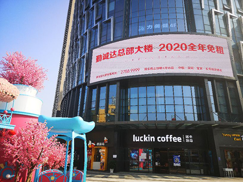 2月26日下午,記者來到位于寶安區(qū)新安三路的勤誠達(dá)總部大樓。剛出五號(hào)線洪浪北地鐵站口,抬頭就看到了大樓LED屏展示:“勤誠達(dá)總部大樓,2020全年免租”、“你復(fù)工我賦能”。