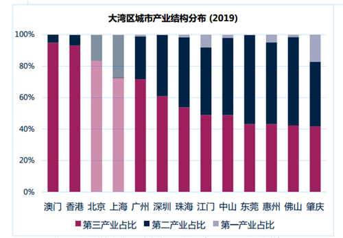 注:北京、上海兩市數(shù)據(jù)僅作對比參考使用;香港、澳門為2018年全年數(shù)據(jù),GDP根據(jù)當年年末匯率折算為人民幣