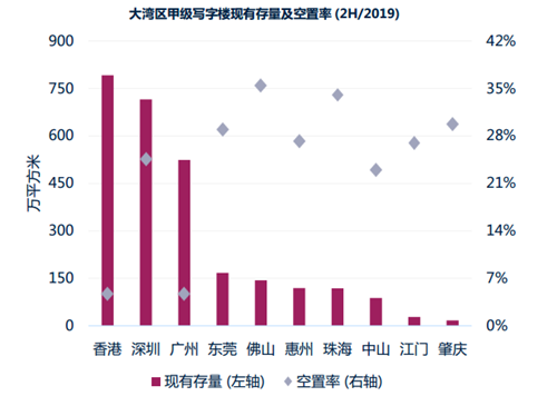 2019年下半年,大灣區(qū)十一城甲級寫字樓市場新增供應共計達140萬平方米。