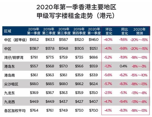 目前香港寫字樓租賃需求變得疲弱,展望本年全年的待租率將維持在雙位數(shù)的水平,整體租金在本年內(nèi)將下調(diào)13-18%,中區(qū)的跌幅更會多達15-20%。
