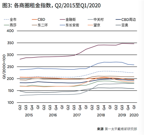 然而,面對疫情沖擊,北京仍有兩大商圈“逆勢”增長。金融街和中關村核心區(qū),租戶黏性較好,季內(nèi)空置率仍處于相對低位,分別為2.1%和3.7%。“這兩大商圈一直是北京空置率低、租金高的,源于背后是背后互聯(lián)網(wǎng)科技、金融兩大產(chǎn)業(yè)的支撐!绷执T披露,即便市場大盤不佳,金融街與中關村核心區(qū)兩大商圈一季度租金依舊分別上漲1.5%和1.4%,可見產(chǎn)業(yè)活力。