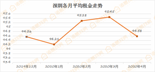 諸葛找房數(shù)據(jù)顯示,4月深圳租金均價(jià)94.58元/平方米/月,環(huán)比下跌0.91%、同比下跌4.24%。呈現(xiàn)下行趨勢(shì)。