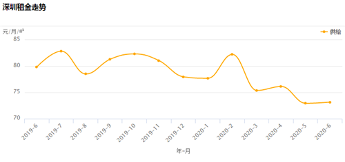 再根據(jù)房產(chǎn)大數(shù)據(jù)顯示,深圳租金持續(xù)下滑,五月下降幅度明顯,為72.93(元/月/㎡)。